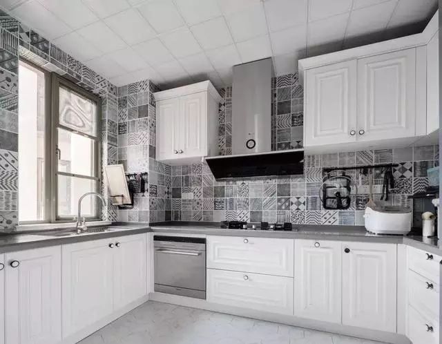 素雅的花色墙砖让这个厨房多了一份异域风情~