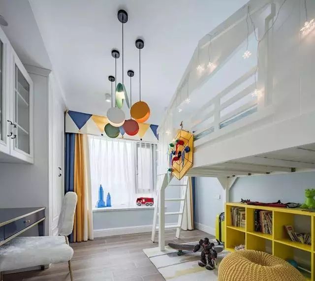 由于业主是儿女双全,所以还有一个十分可爱的男孩房间~相比于闺女房,这个男孩房多了一些俏皮~