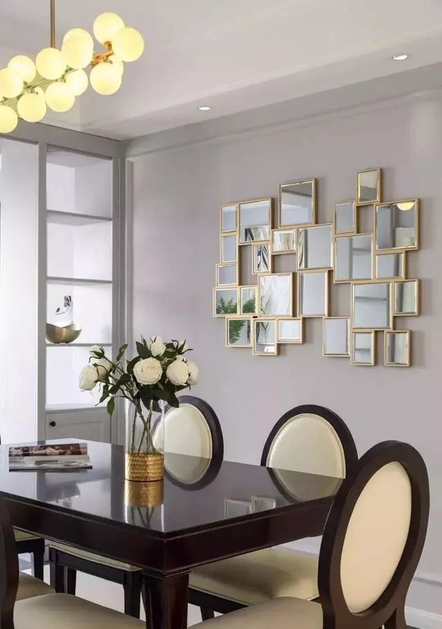 客餐厅整体上是一体的开放式设计,不过细节上也还是设计了隔断,比如吊顶、背景墙的装饰。而这样整体看起来也真的是很时尚又带有一股轻奢之气息呢!