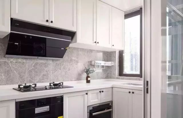 时尚的现代灰墙砖搭配白色橱柜打造出一个美观大气的厨房~