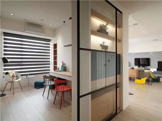 书房的玻璃移门造型简单,材质通透,还能两用,实在是棒!