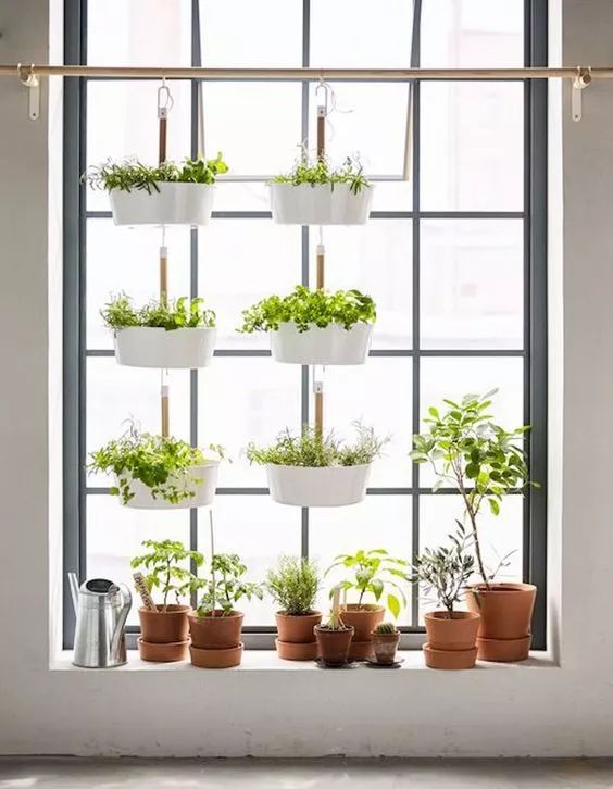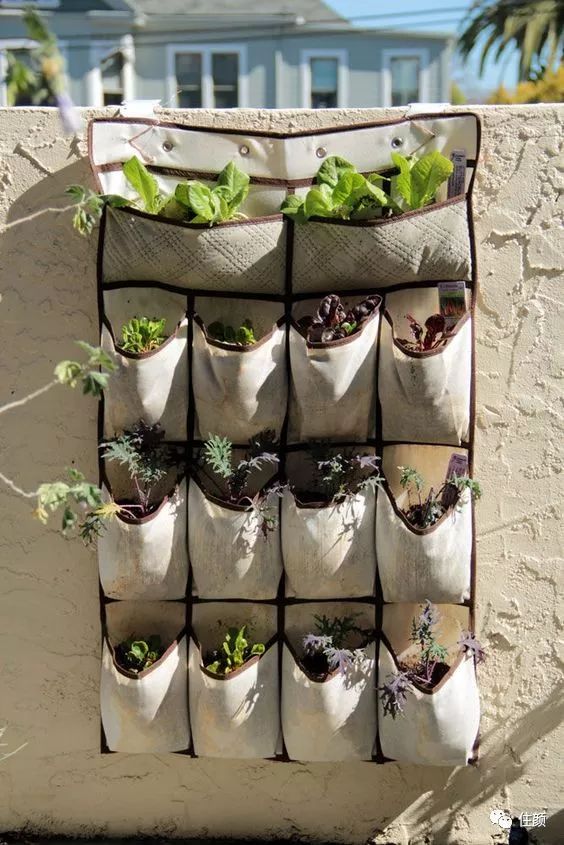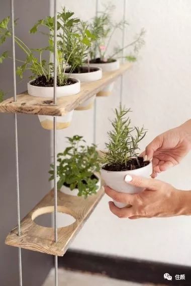 把菜园挂起来怎么样?这种层叠式的种植,最大效率地运用了空间,而且还是很不错的装饰呢。