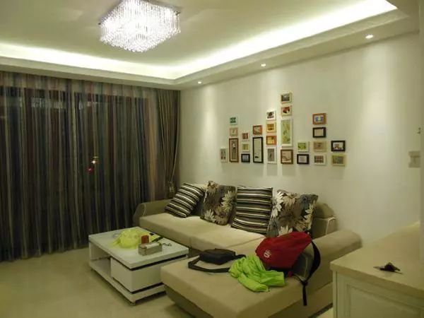客厅还不错,整体现代简约风,大众比较能接受的样式,看起来还挺温馨的,有舒适的沙发、温馨的照片墙。