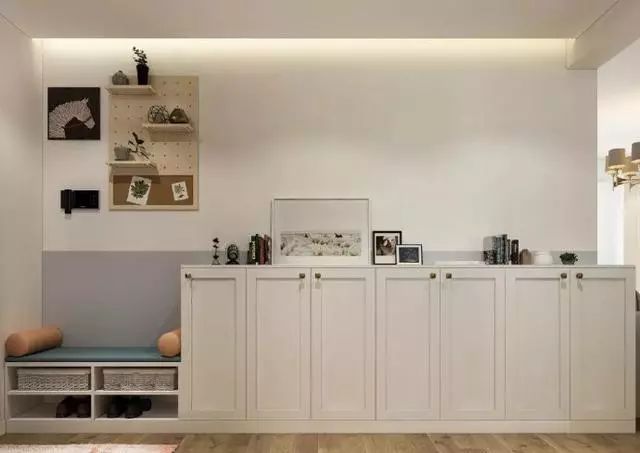 玄关,摆上一个长型的鞋柜,摆上一些装饰画,特别的好看。