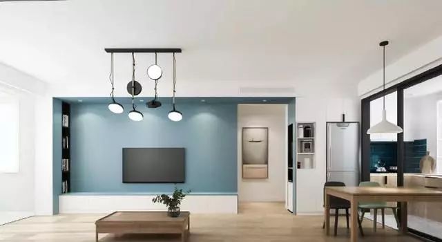 电视背景墙用了蓝色,不然整体太白了,压住整体的视觉感。