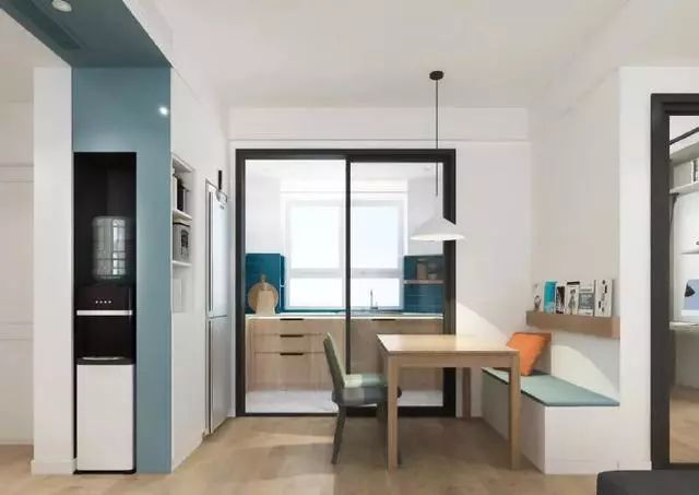 过道正好区分客厅和餐厅,餐厅位置不需要很大,小而温馨,一家人其乐融融。