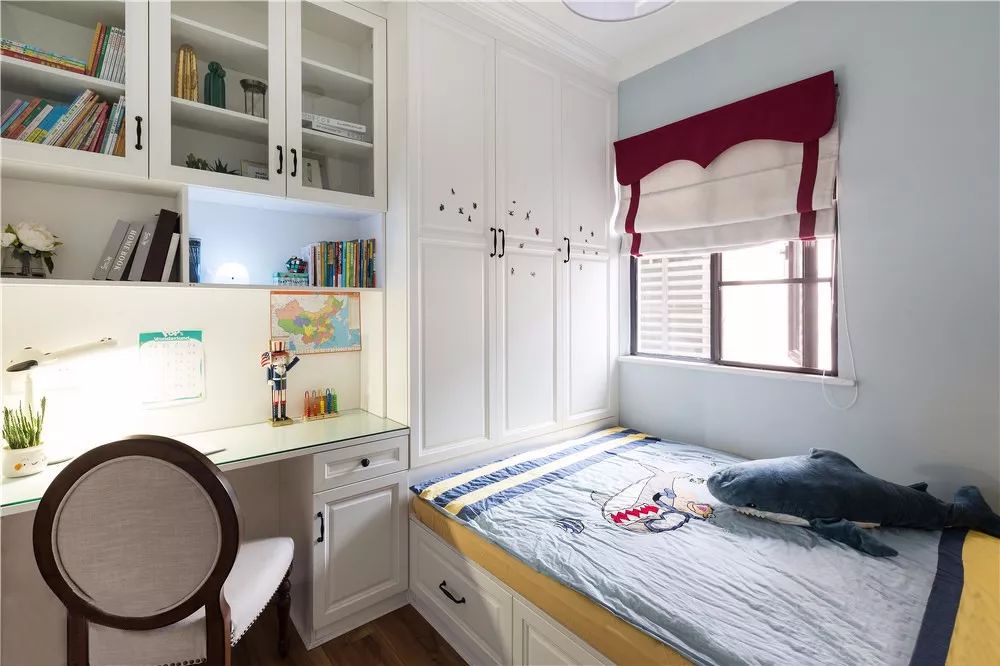 ▲儿童房选用一体式家具,将每个功能区进行明确的分隔。榻榻米占地面积小,一床多用,收纳功能强大。