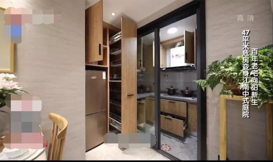 厨房同样面临采光不足的问题,冰箱和餐桌就占据了整个厨房的大半空间,厨房的操作台高度及动线明显不合理,对于肢残三级的女主人来说并不友好。