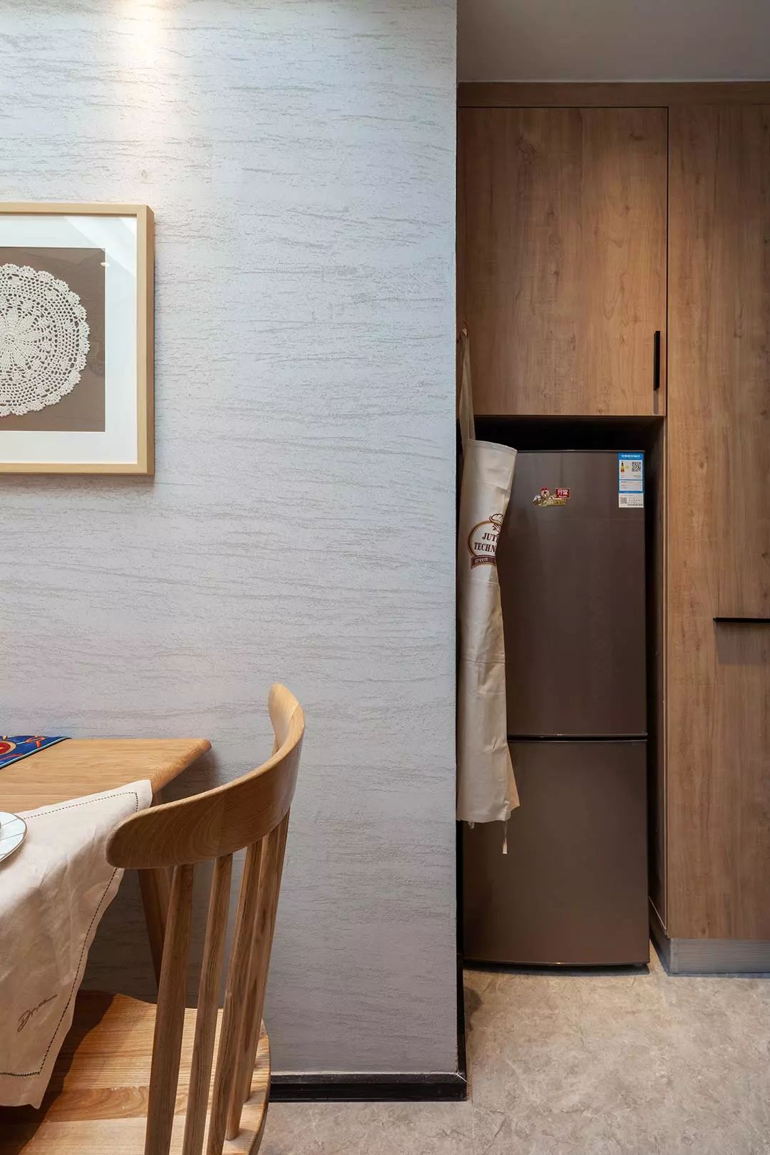 原有的房屋并没有严格意义上的餐厅功能只是在厨房有一张餐桌,改造后设计师在客厅与厨房中间加入了餐厅。
