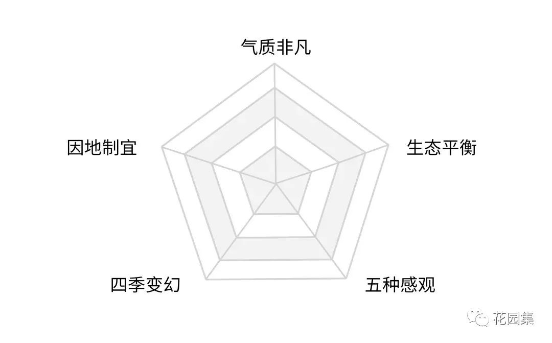 我总结了造园的五个维度:因地制宜、四季变幻、五种感观、生态平衡、气质非凡。