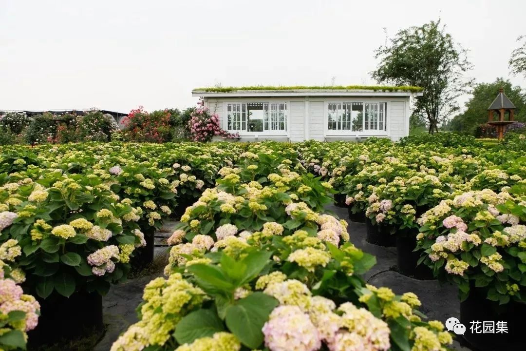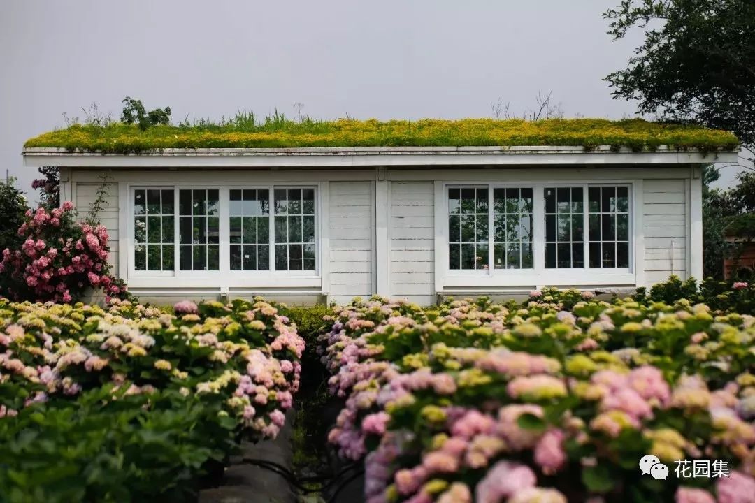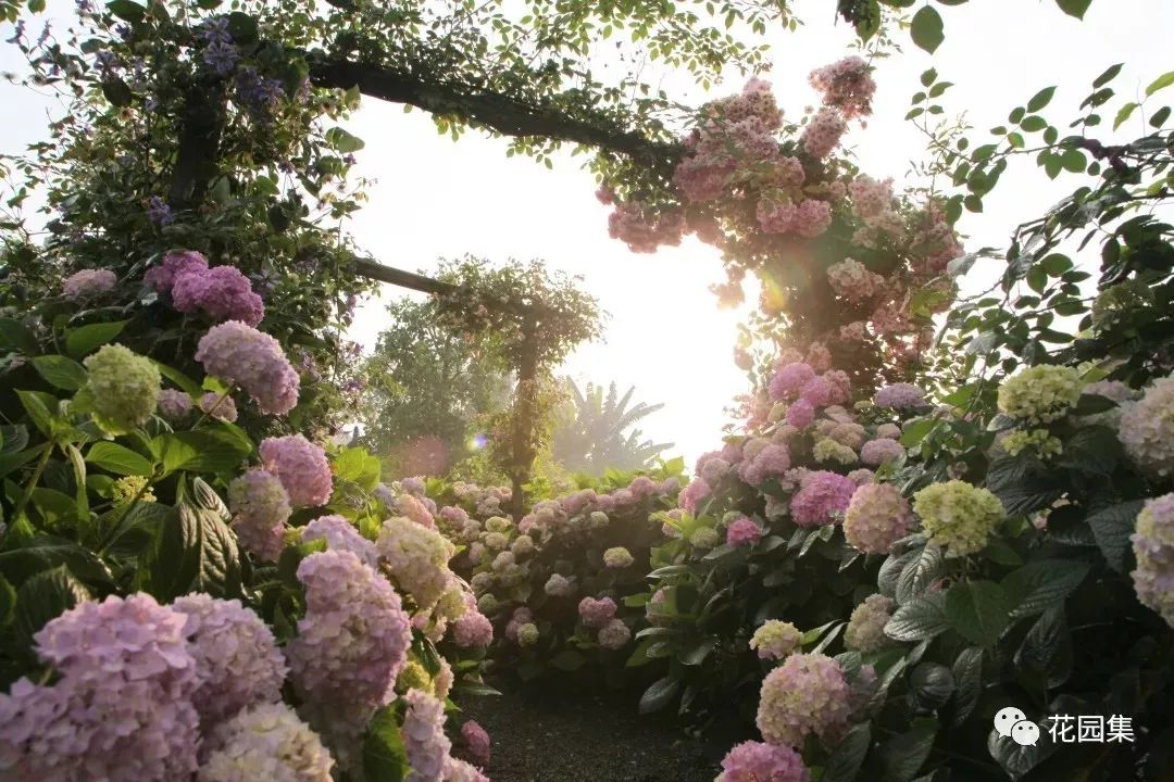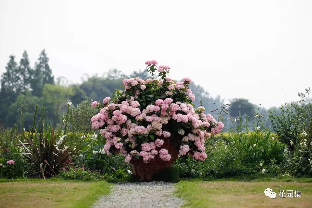 一个陡坡,种绣球再合适不过了,绣球喜欢半阴,就种下几棵大树,一个流动的水景,可以使空气湿度增加,有利于营造小环境。