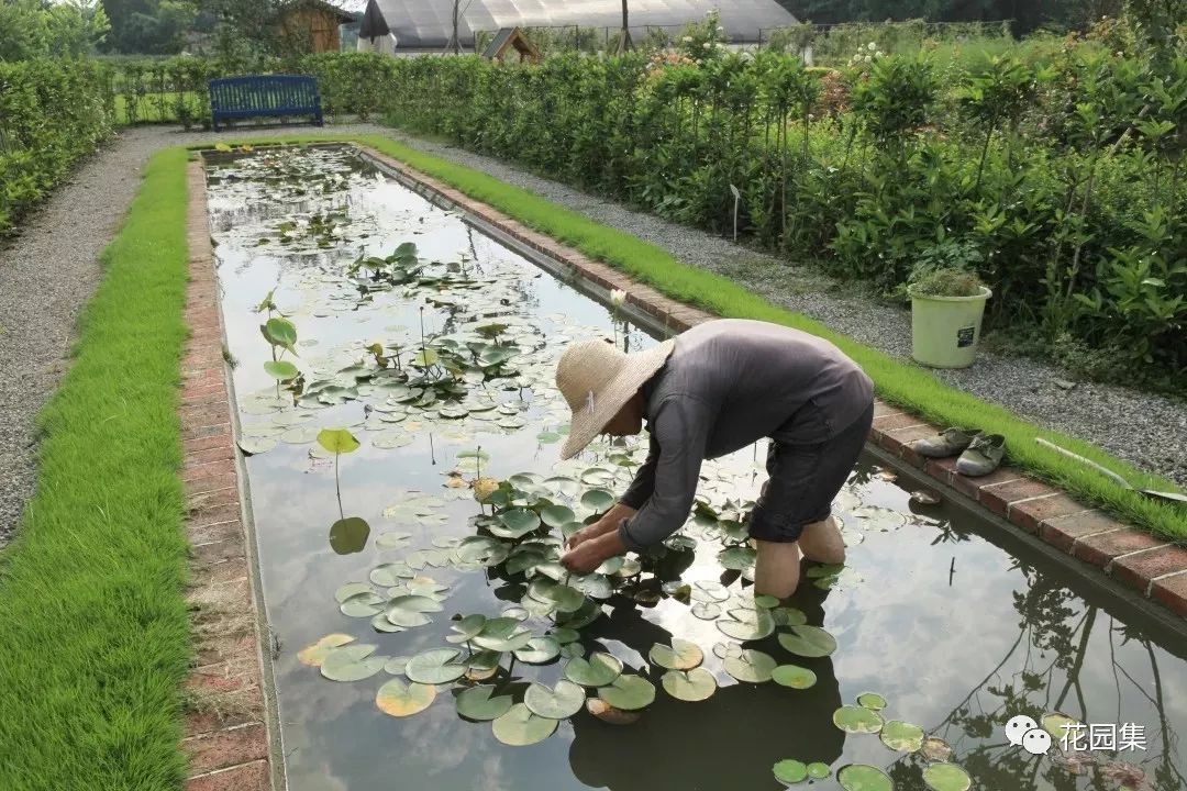 荷花等水生植物种植在池塘里,就完全不需要打理了。