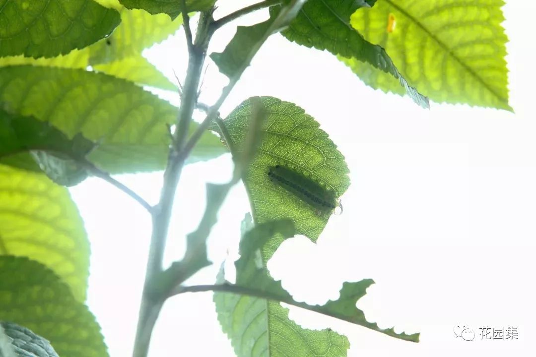 月季上长青虫并不多,青虫喜欢吃木槿花叶子,但夏天花过后,秋季来临,恐龙花园两株大木槿树上全是虫,没多少天就被啃得一片叶子不留。