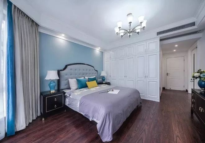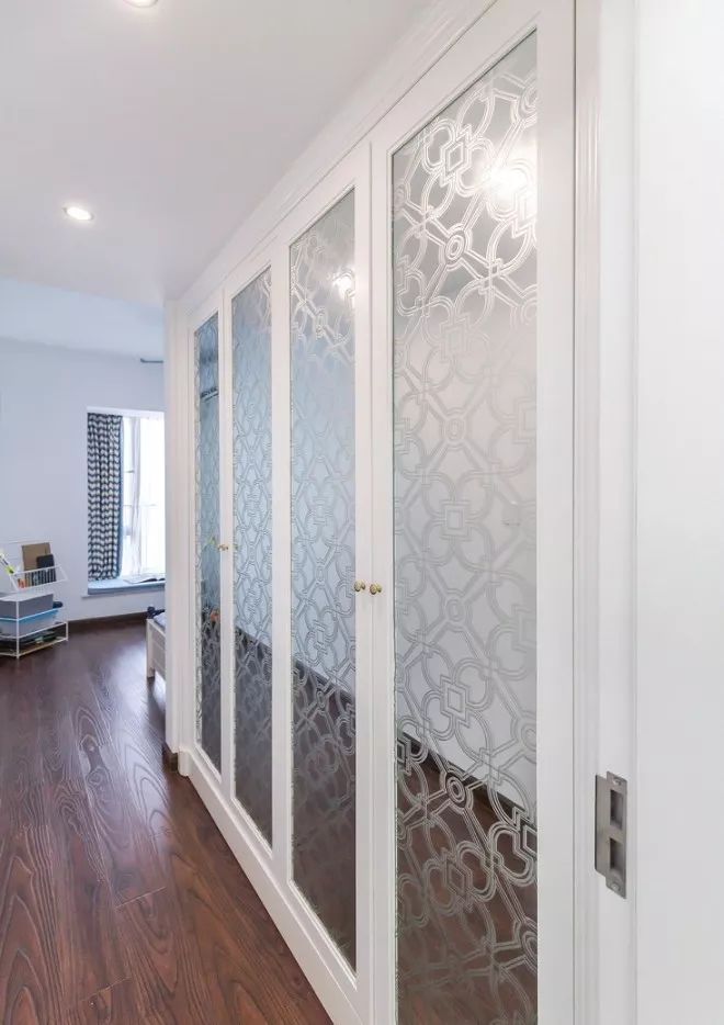 靠墙整面的置地的大衣柜,满足收纳的同时也是作为隔断,收纳柜后方是主卫,结构十分工整。