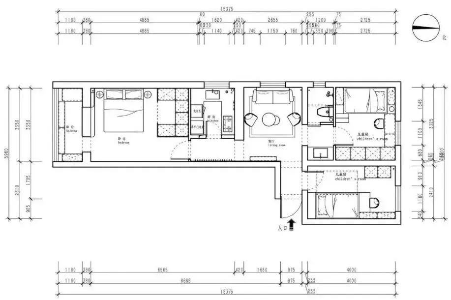 平面布置图,户型整体比较扁长,却也给人一种简单的感觉。