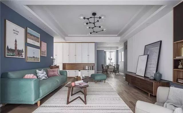 关注微信公众号:jia-xd,学习大户型装修知识和技巧!近些年来清新自然的北欧风很受年轻业主们的欢迎,这类风格营造出的自由、轻松的家居氛围,很符合年轻业主的喜好。今天小编为大家带来了一套北欧混搭100平三室两厅效果图,主人以淡淡的薄荷绿和蓝色为主基调,硬装出轻松、舒适的居室氛围,下面我们就一起来看