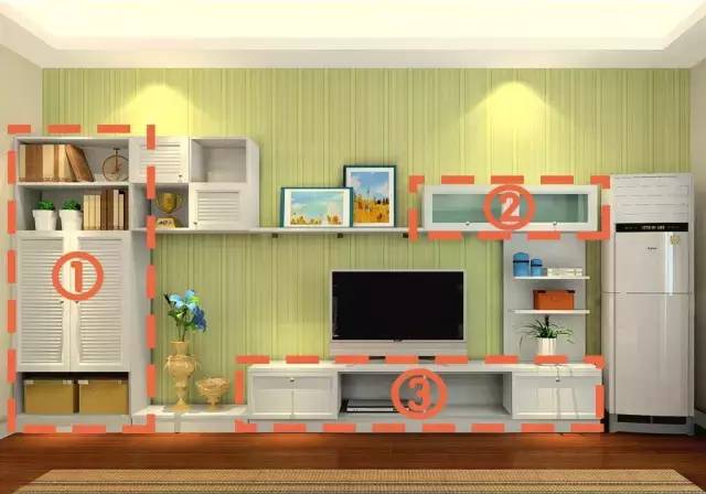 ①:这种组合既有不同功能的柜层,又能充分利用空间。②:底柜部分可以用来收纳一些遥控器或者是光盘等等,是一个方便拿取的地儿。③:顶柜的充分利用了上方空间,这里可以放一些不怎么用到的东西。