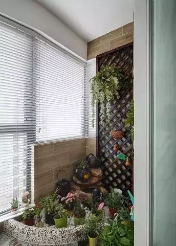 阳台,砌了一个养鱼池,装饰得好漂亮,边上还有许多的绿植,完美