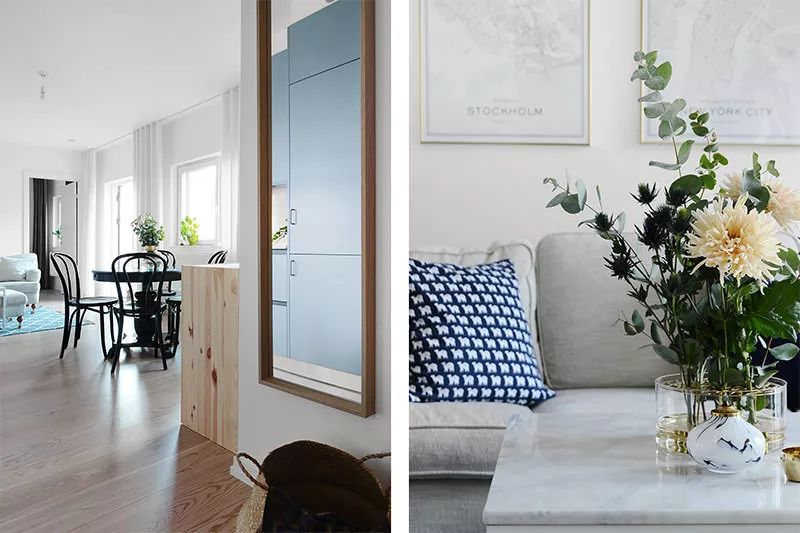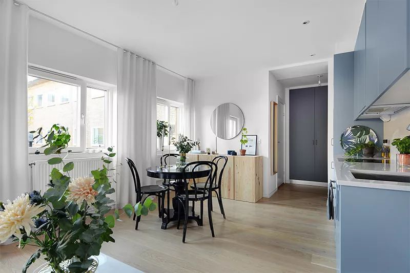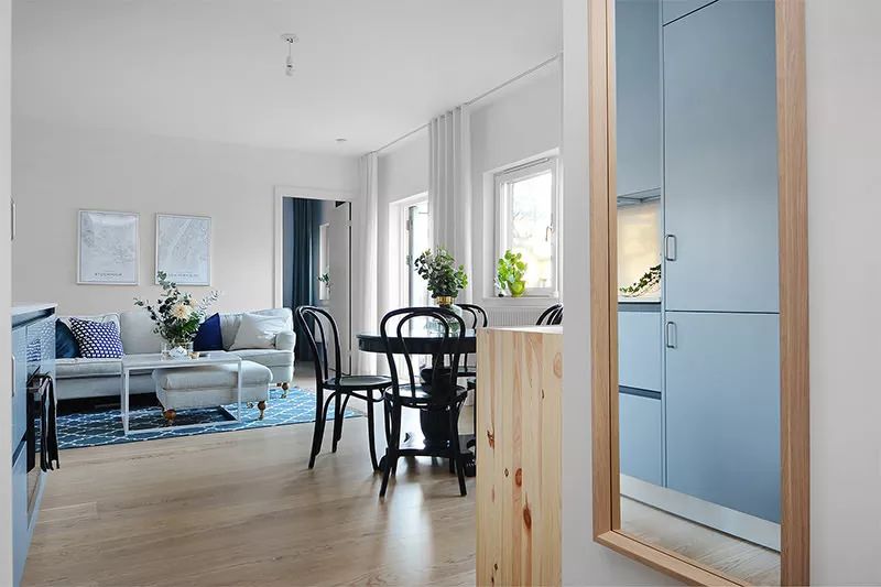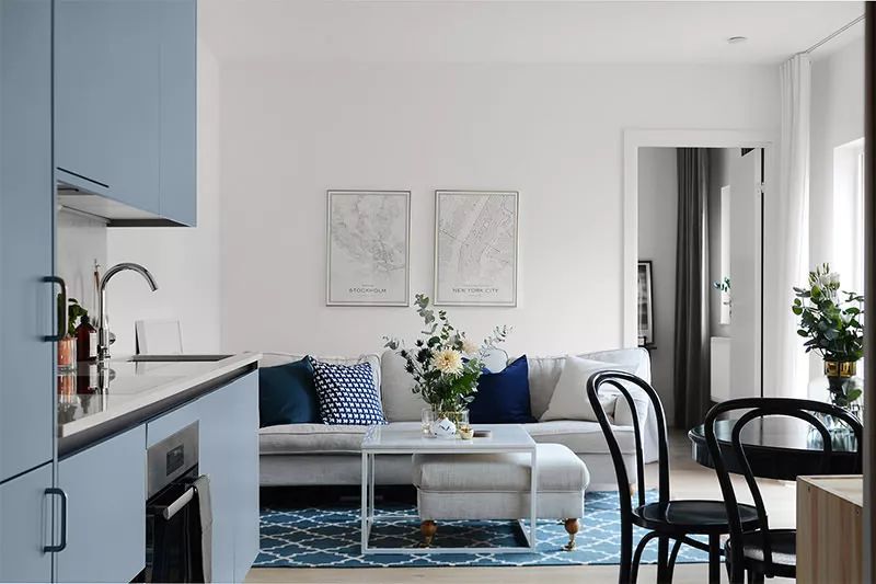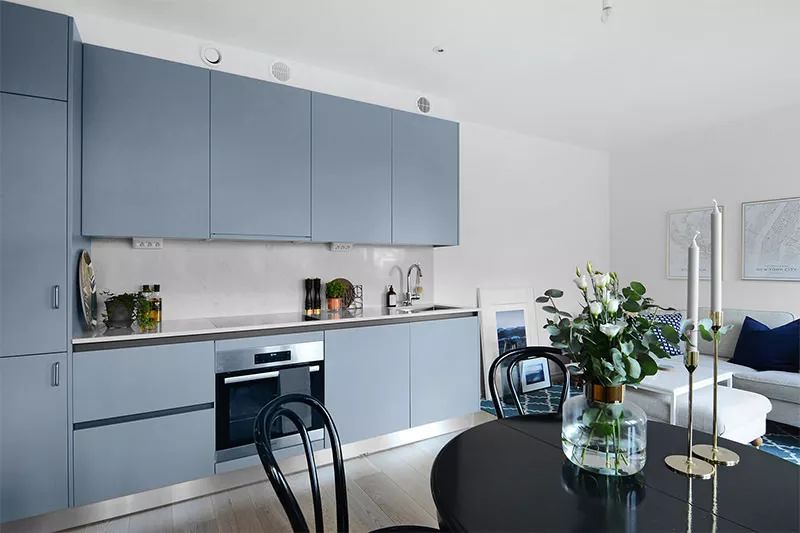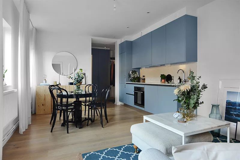 这间位于斯德哥尔摩的漂亮公寓面积仅38平方米,向我们展示了将环境融合的解决方案,使公寓拥有充足而温馨的房间。在此情况下,自然采光也有很大帮助。在这个特定的设计中,橱柜的蓝色调为室内带来现代而有趣的焦点。厨房与起居室完全融为一体,设计为生活元素,使其在社交环境中和谐共处。在这种环境中,冰箱则内置于高柜中。