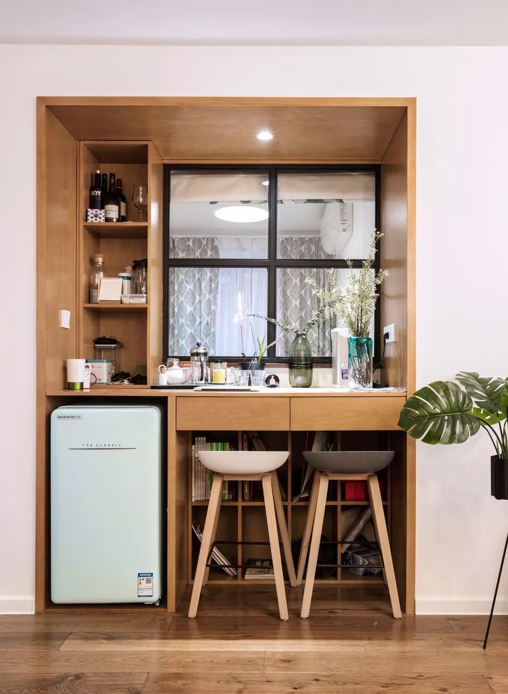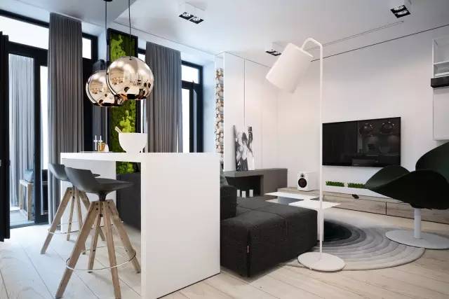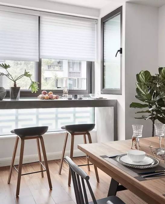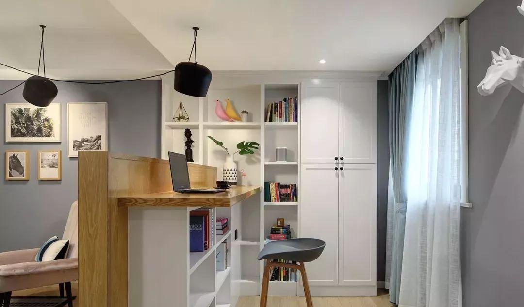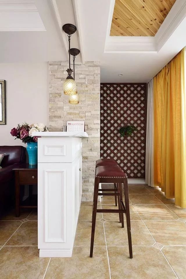 如果用一平米来提升生活情调,你会想到什么呢,腻腻想到了吧台,在客厅与阳台之间设一个小吧台,即是隔断,也是一处不错的休闲之处,暖暖的灯光下,两人对视而坐,喝喝小酒,谈谈生活,也是别有一番情调的。