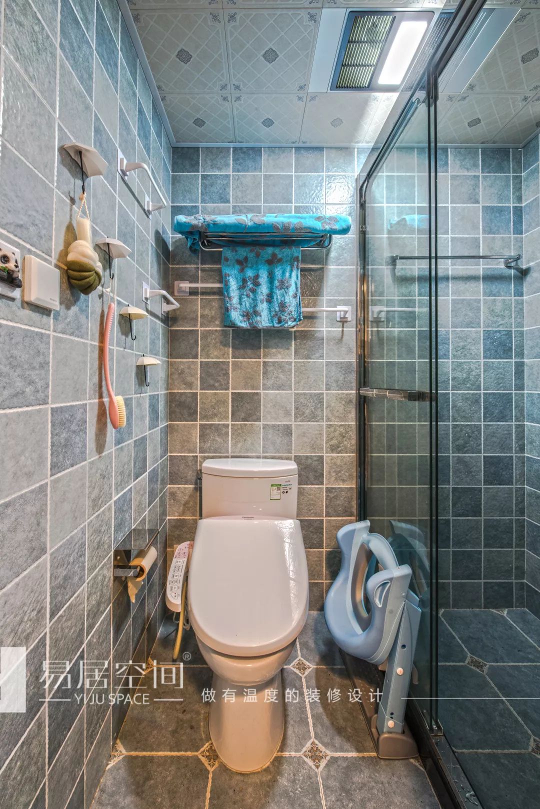卫生间采用300*300,1*9蓝灰仿古砖,配套300*300的整地砖。