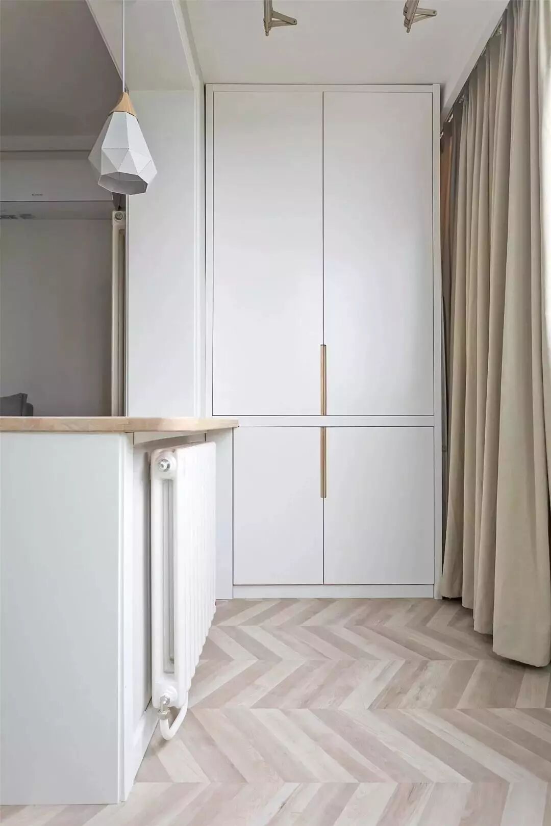 ▲主卧室的阳台做了半隔断墙,多一个吧台,不仅有收纳柜,还是晾晒区。