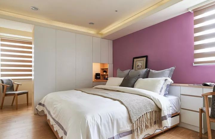 主卧藉由衣柜的设置,于后方规划出一间半开放的更衣室。