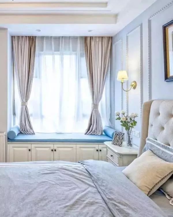 主卧的飘窗设有收纳柜,很实用,而且上面铺上舒适的垫子就是一个休闲之地~