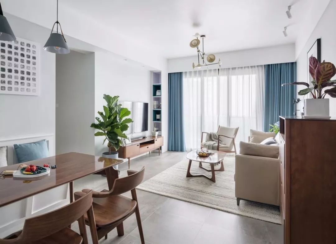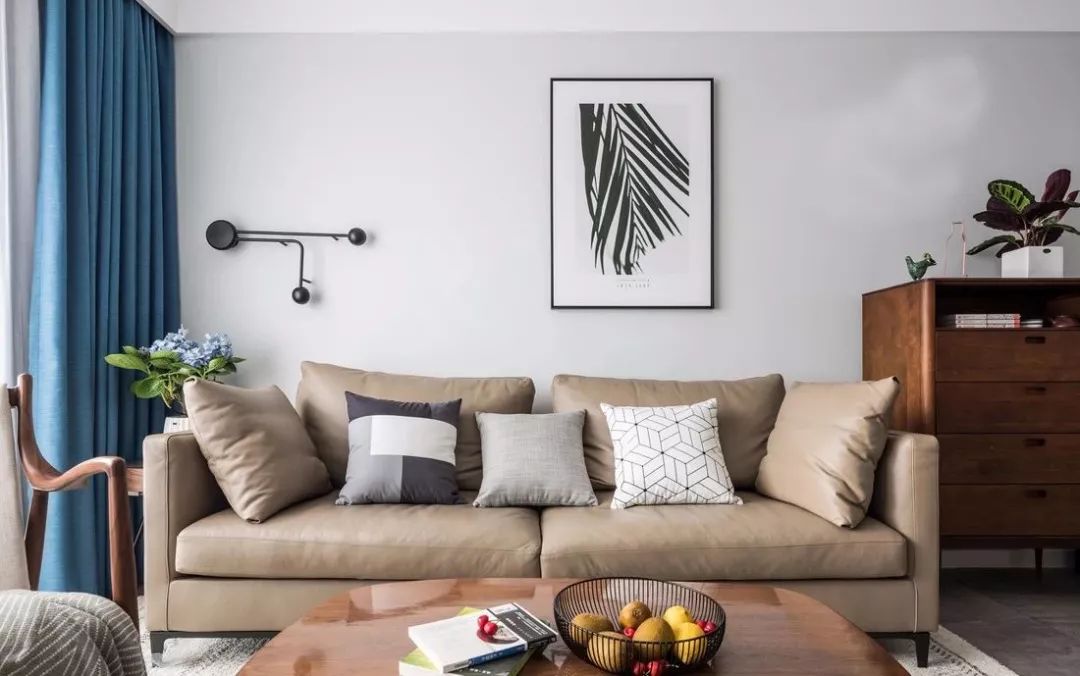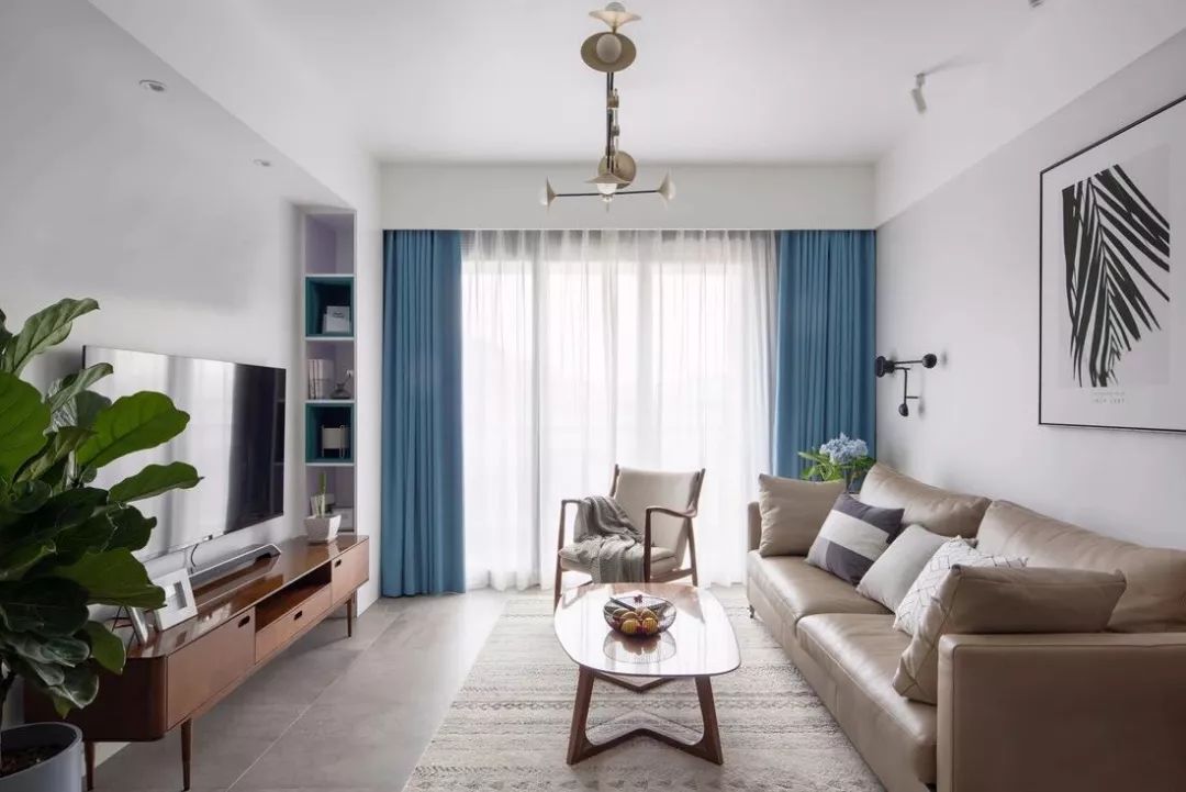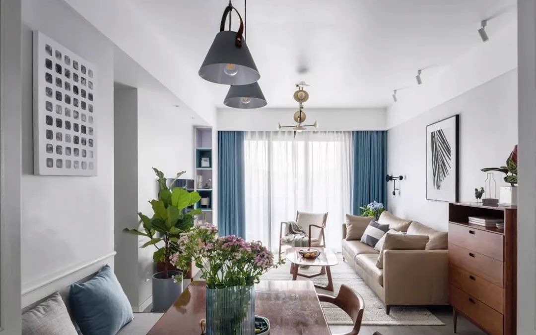 关注微信公众号:jiasjmt 一起学习更多装修技巧与案例!想要免费设计和了解更多装修知识,就点我吧!面积:89㎡户型:三居风格:北欧平面图:▲ 客厅以灰白色为主调,蓝色的窗帘在这片平和与宁静中注入一股清凉的活力。▲ 坐感舒适的沙发上摆放几个抱枕,色彩对比下也是轻松自在。背景墙上装点一幅画,简单的