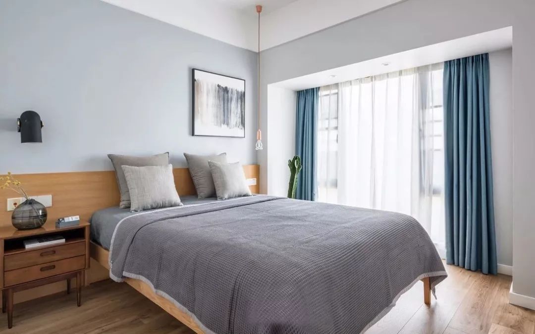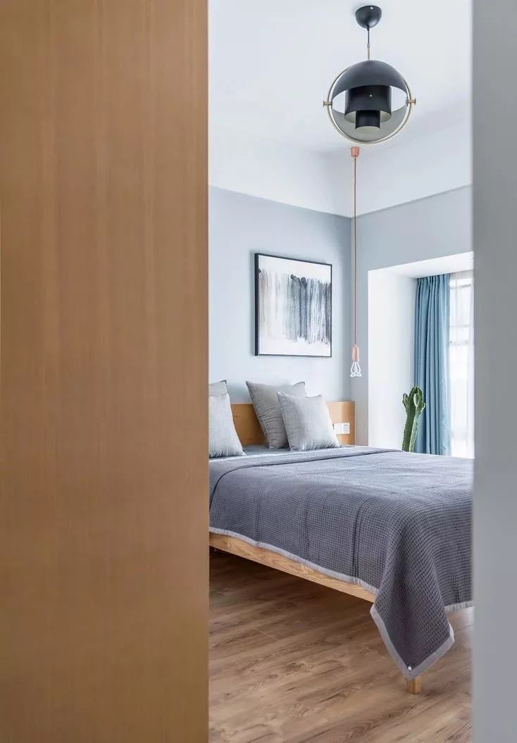 ▲卧室在延续客厅的风格上多了一些蓝色的感觉,家具也选择了偏暖的木质,增添温馨的感觉。