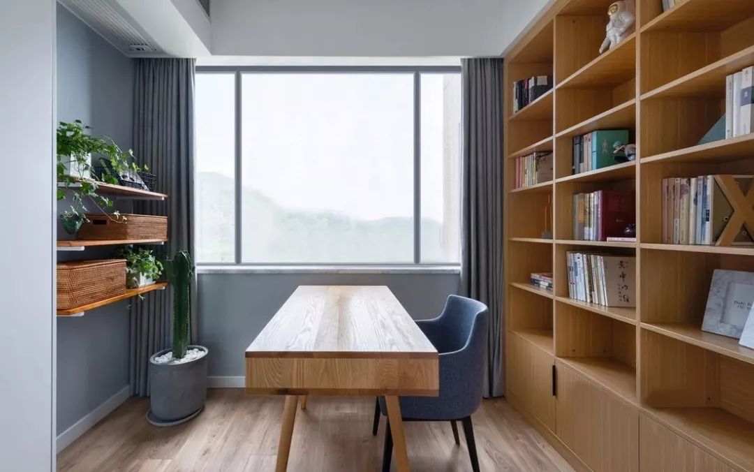▲书房有大大的窗户,工作累了可以倚着窗发发呆,放松一下。一整面墙的书柜满足收纳需求。