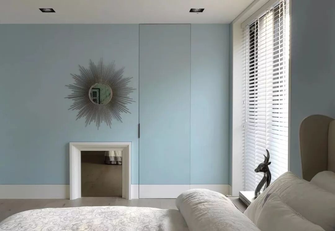 想要让墙面和隐形门的颜色、纹路、材质全部保持一致,觉得有难度的话,不妨只求颜色一致,实现起来会简单很多。虽然还是有点露馅,但是视觉上的统一效果还是不错的。