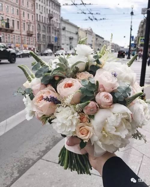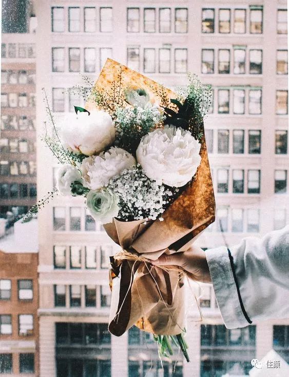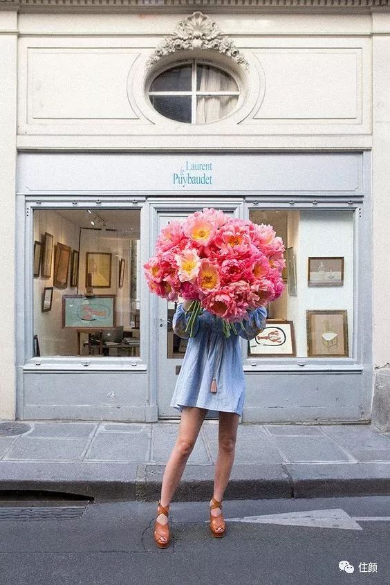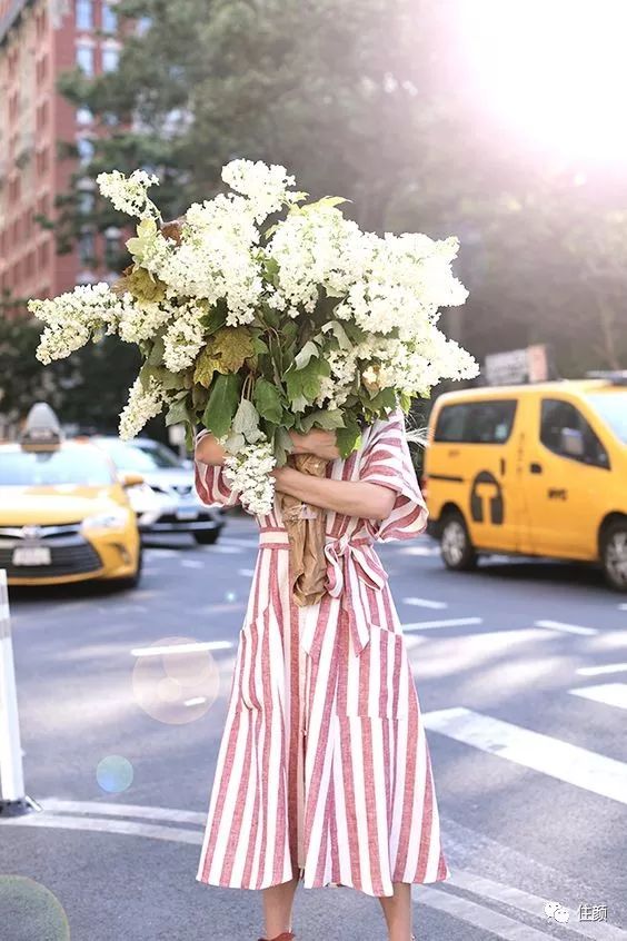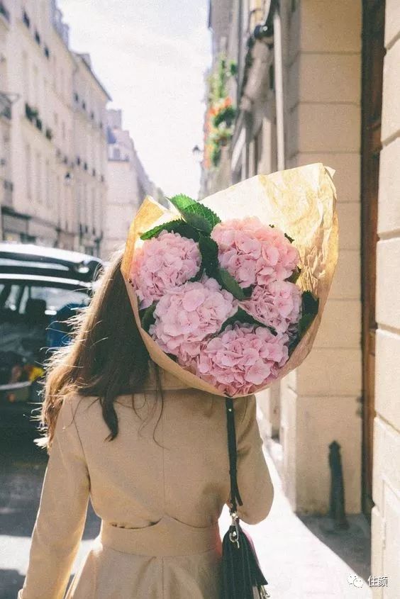 将整束鲜花自然地靠在肩头或臂弯,漂亮的街道为你和鲜花加分,留下一个精彩满分背影。