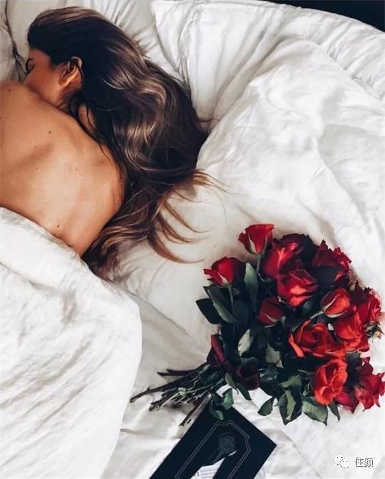 纯净简约的床品为背景,小露香肩美背,或者选择穿一件丝滑柔美的法式吊带睡裙,将鲜花放置于一侧,慵懒又性感的氛围,最是撩动人心。