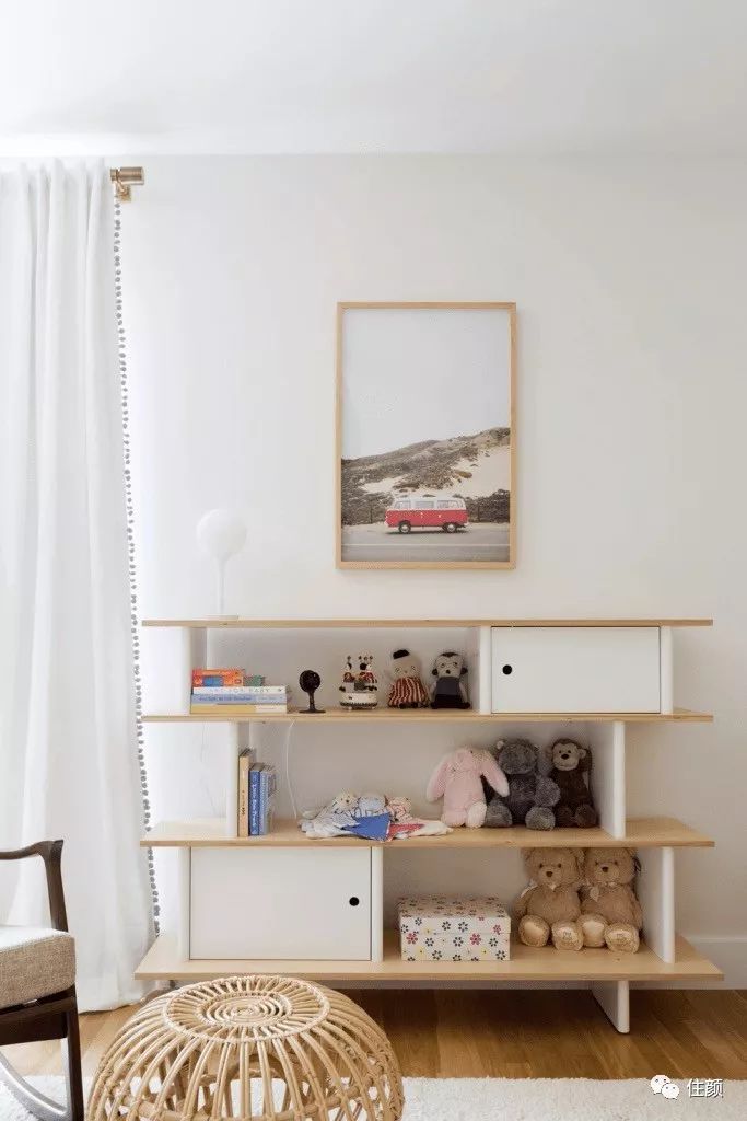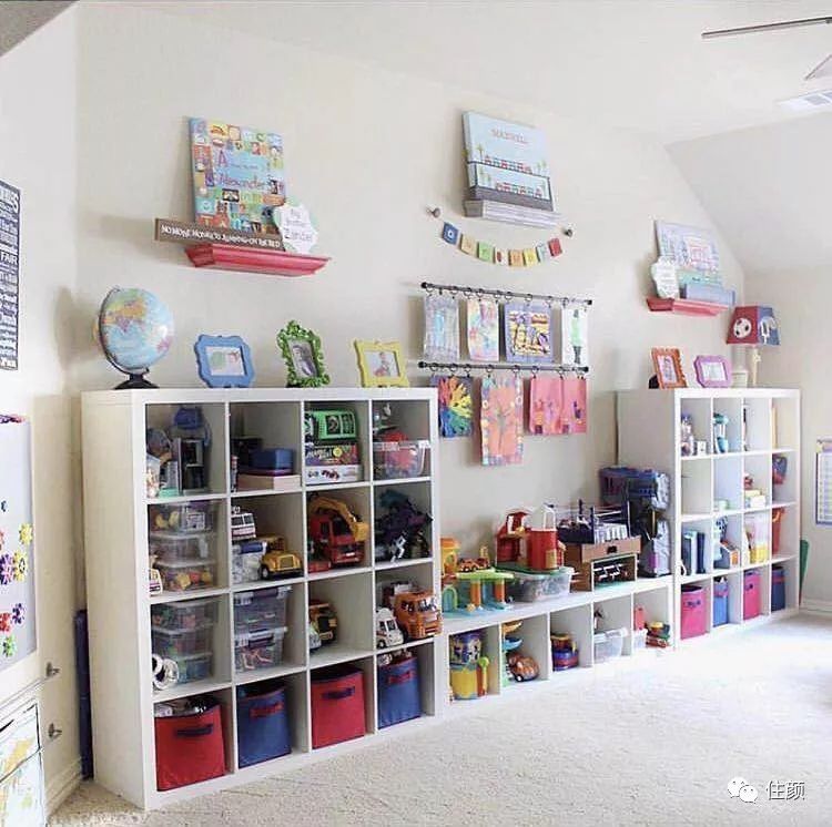 最常用到的玩具收纳家具就是储物柜/架,分隔清晰明确,存储空间丰富。搭配各种收纳筐,运用不同款式/材质/颜色,顺便起到区别分类的作用。