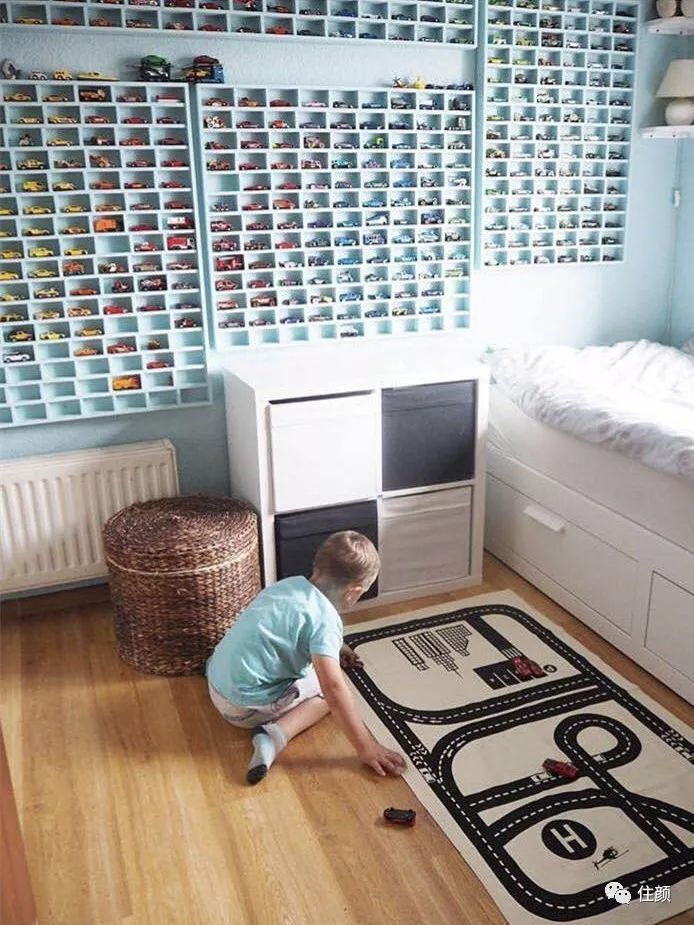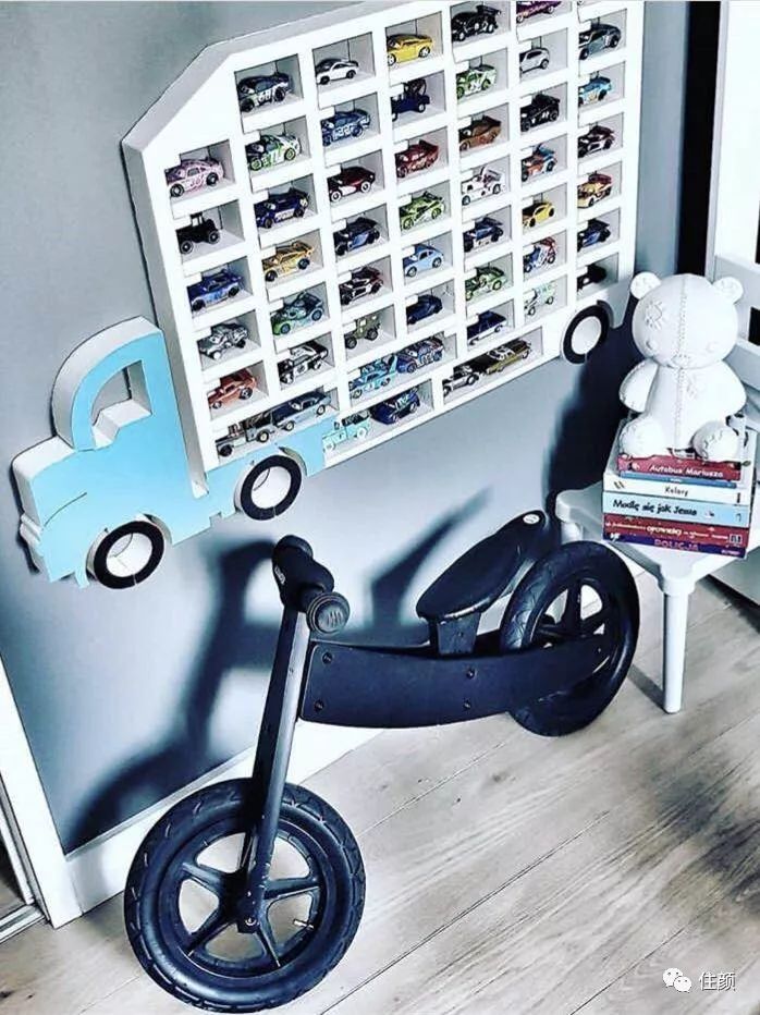 小男孩都少不了汽车玩具,可以打造一面专属的“汽车墙”,看上去也是很霸气哦!