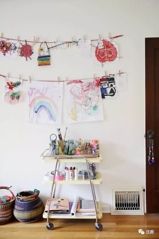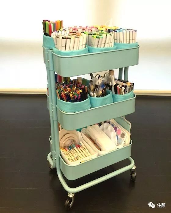常见的带滑轮的推车,就是很好的存放小物的装备,尤其是收纳零散多样化的绘画文具物品。