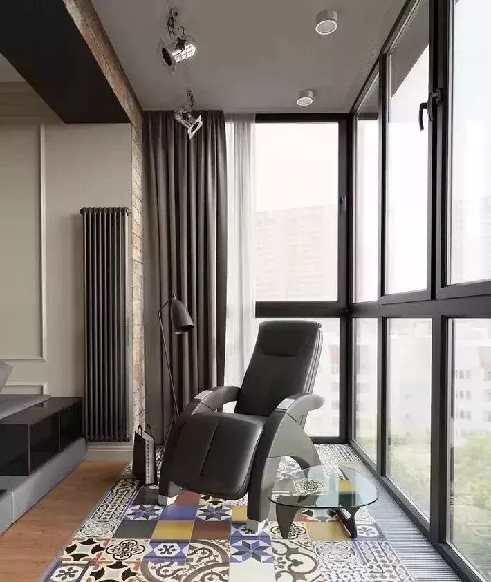 灰色系瓷砖,像是水泥的颜色,故称为水泥砖。阳台铺贴这种瓷砖,素雅的同时展现出时尚大气、低调高级的美,现代风、工业风中较常见。