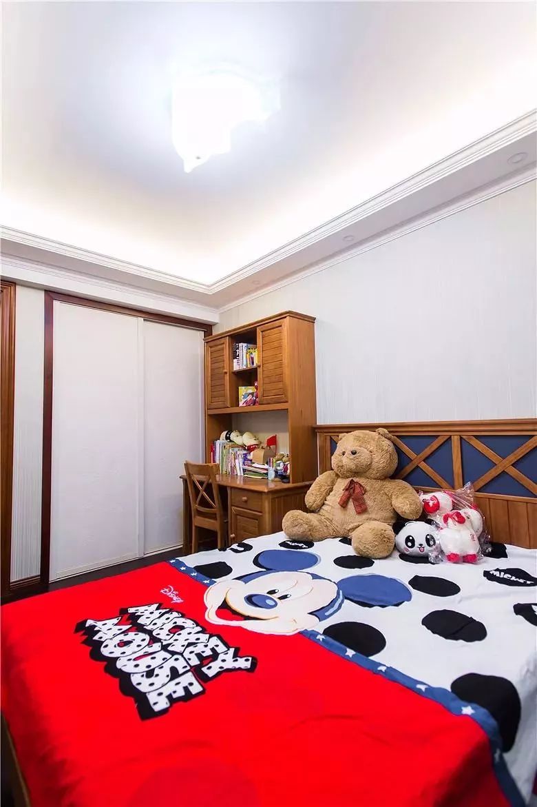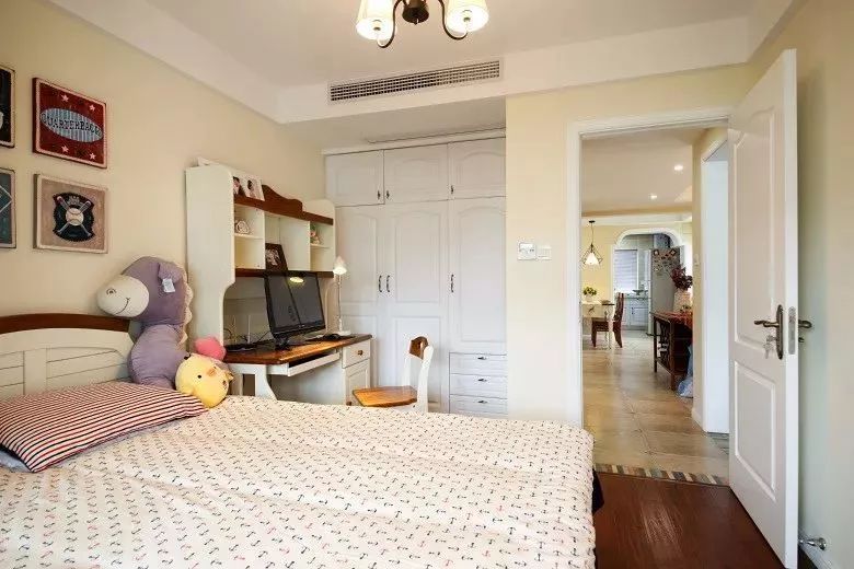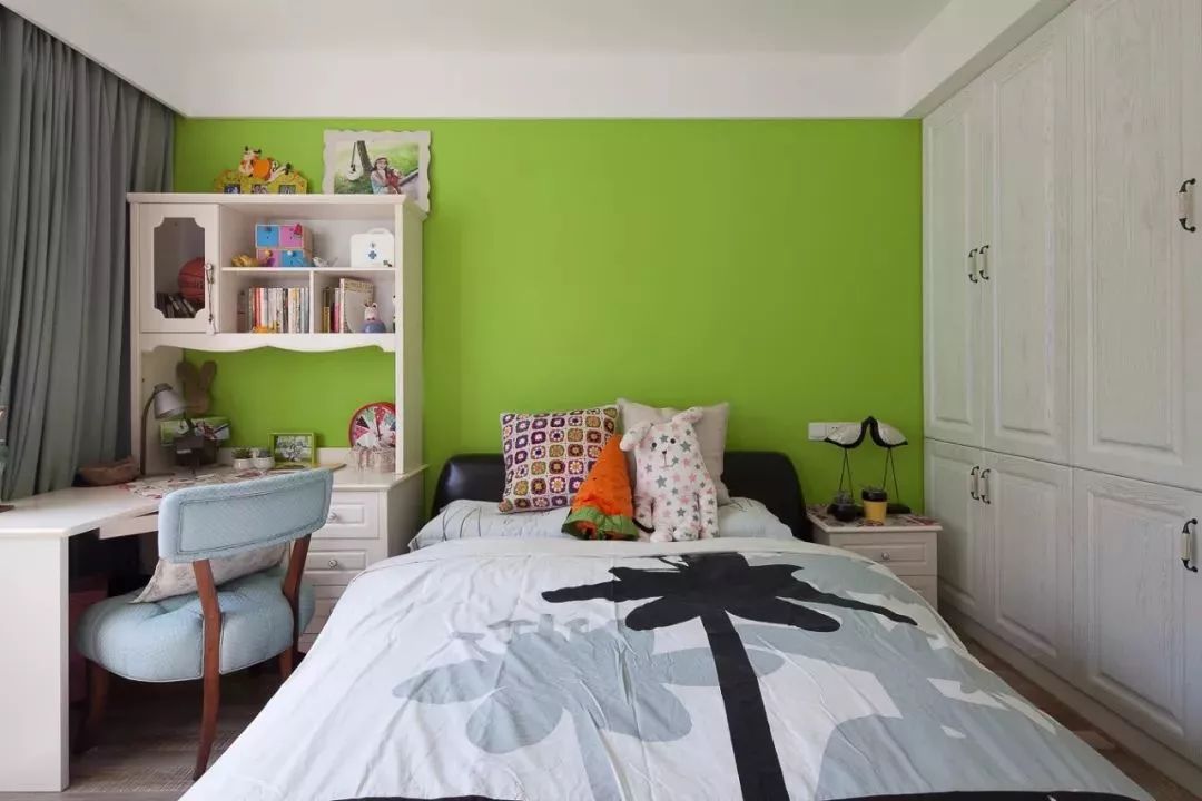 孩子的床可以不用太大,但是衣柜和书桌就可以大一些,中间玩耍的空间也会比较宽敞。