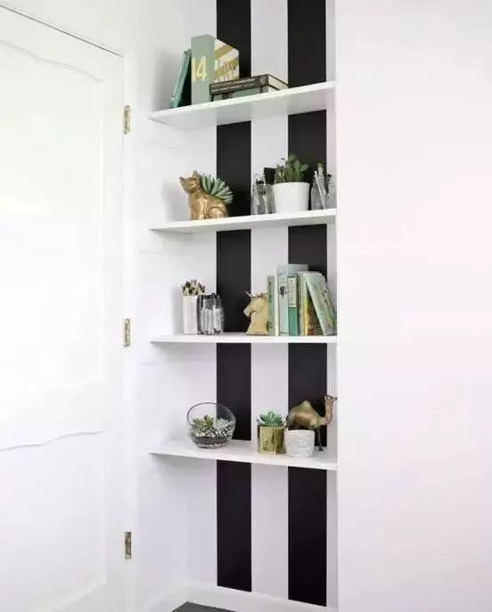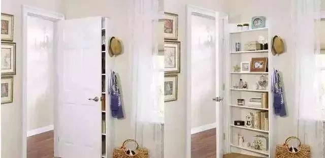 01入户门后急着出门?门后可以来个化妆镜+常用的毛巾、雨伞,让你不用在出门前急着找东西,整理好着装再出门,另外,放置一些绿景陪衬,让你心情美美的除外和归来。玄关门后,搭个简易换鞋处,做个小收纳转角,省空间之余,也是一件美美的事情。02卧室门后(1)巧用搁板卧室门后,可以放置搁板,再也不用担心平常随