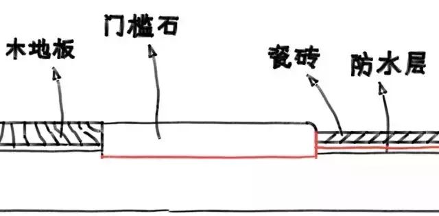 ▲ 用门槛石防止了侧面漏水,门槛石下面也要做防水