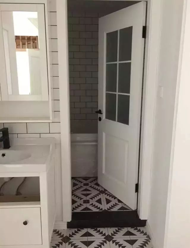 门槛石被大家吐槽难看,是因为大多数时候都不管三七二十一地用黑金沙(黑色花岗岩)。黑色和什么颜色都能搭,闭着眼选黑金沙,实在是很偷懒又讨巧的办法。但宝宝们喜欢的小清新,黑乎乎的一块简直是灾难。