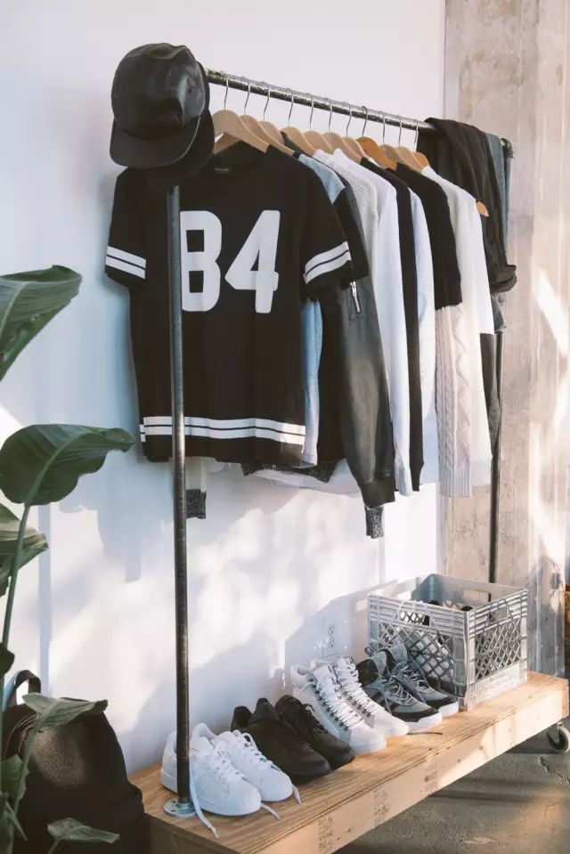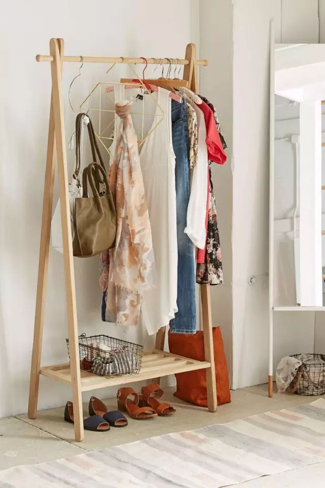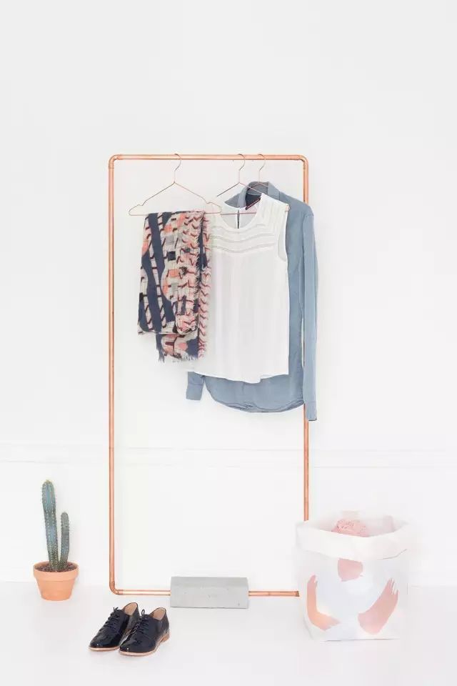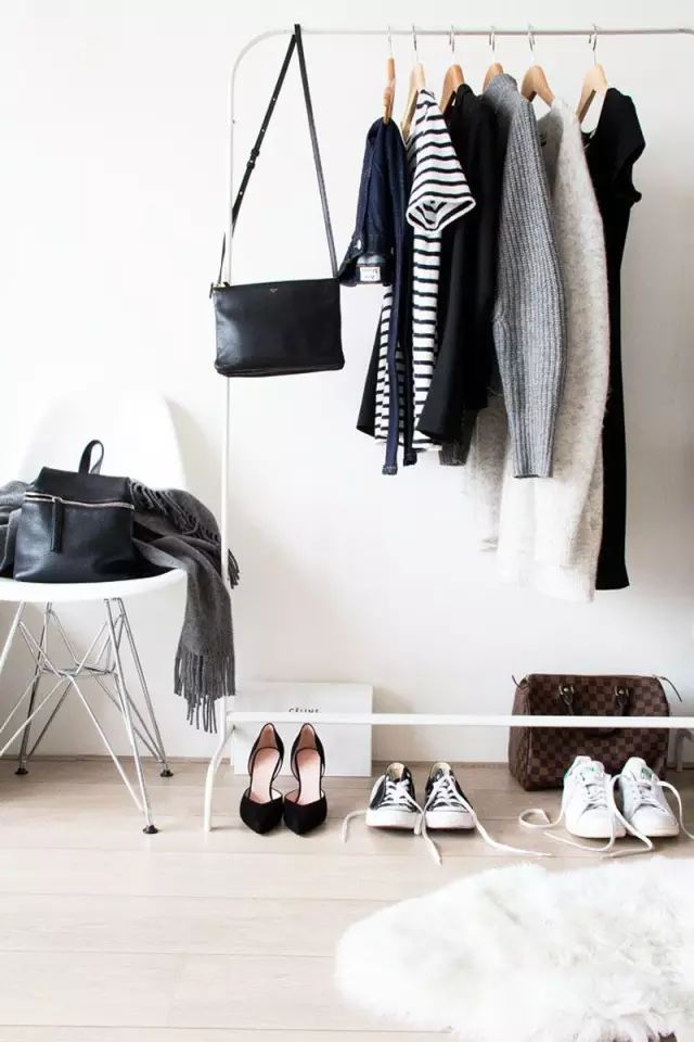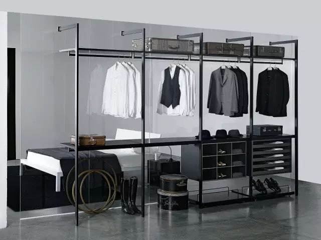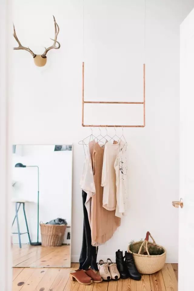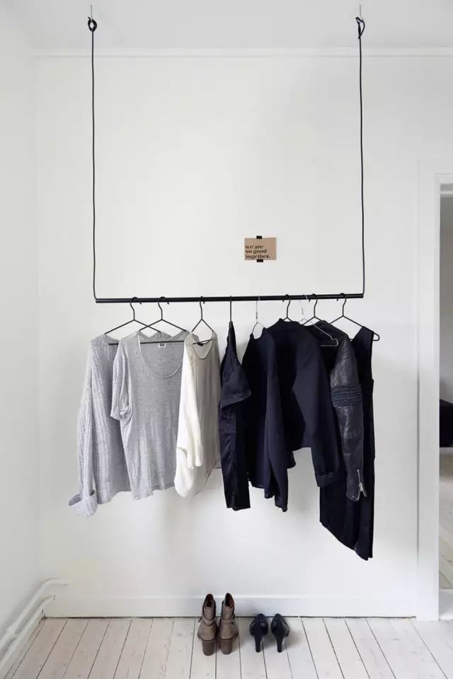 这样悬挂式的衣架也会使空间在视觉上显得更加通透、简单,避免杂乱。