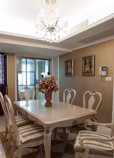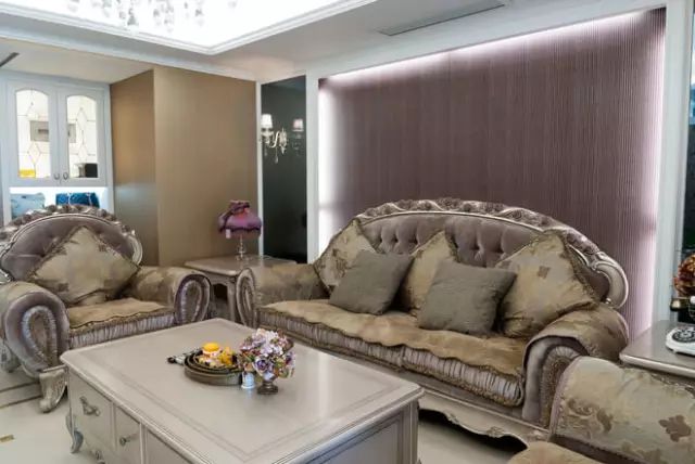 客厅,一套欧式沙发就镇住了整个空间,造型和花色都是精致中凸显十足的贵气感。