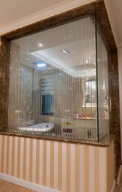 主卫采用玻璃+珠帘隔断,保持小空间采光,也将生活点缀的更有情趣。