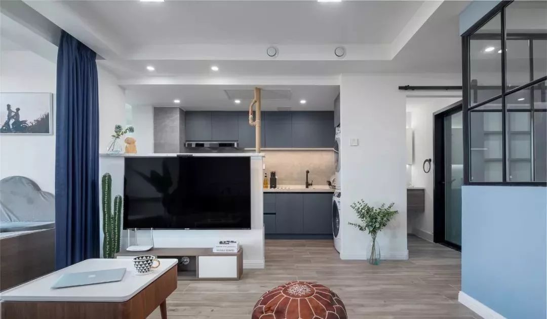 今天推荐的是一套面积仅为68平米的一居室小户型,为满足一家三口的居住需求,将一居改造成两居。根据业主的喜好,将风格定为现代风,色彩上,合理的加入了一些蓝色元素,让整个空间更有腔调。