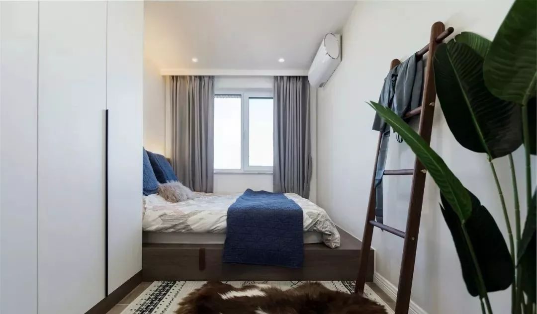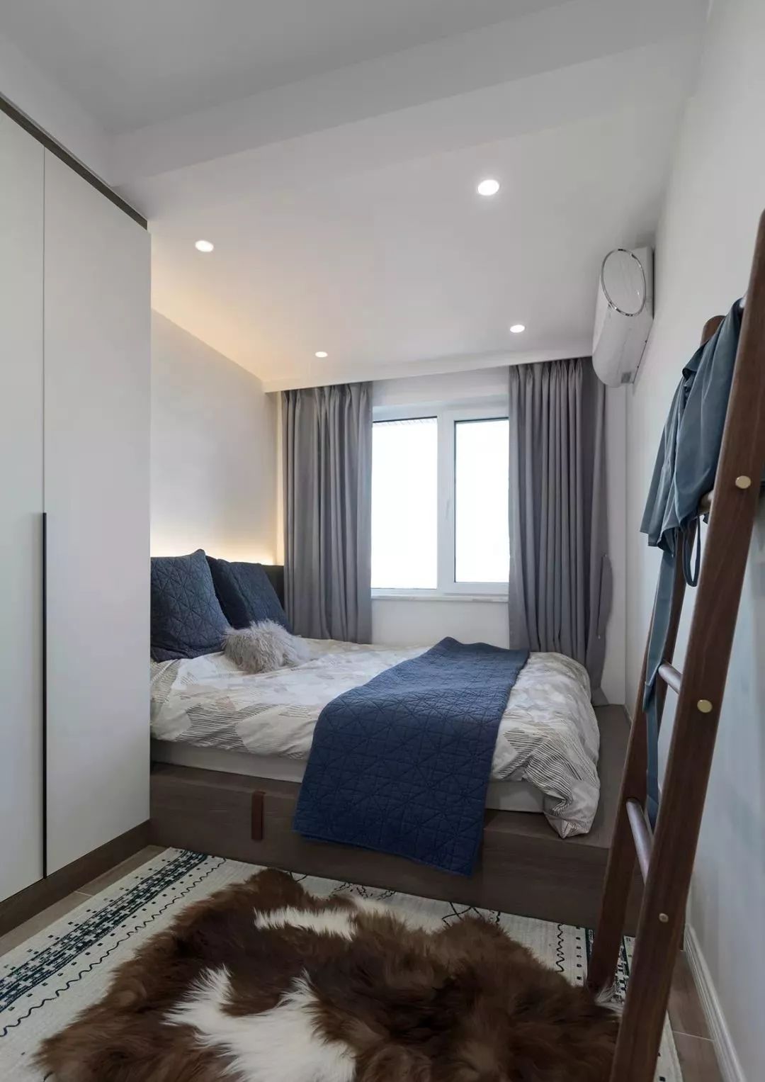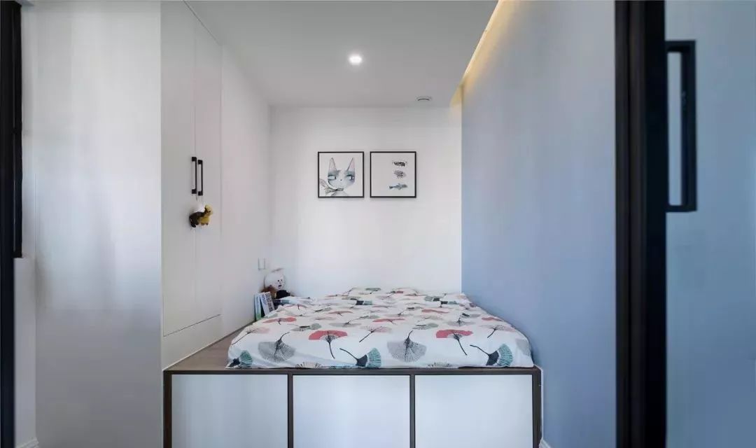 原本卧室空间太小,储物空间严重不足,放床有死角,难看又尴尬。专门定制的双人床,与衣柜衔接起来,实现空间上的0浪费。