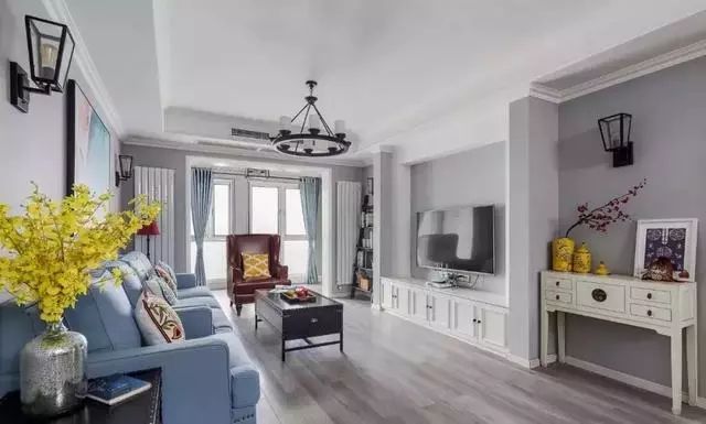 更多装修案例、家居经验欢迎关注微信公众号:jia-ms (美式装修案例精选)这套房子的使用面积为115平米,设计师以简约美式混搭为设计主题,打造一个以实用性为主,由不失复古小清新格调的空间。在软装方面大胆地结合了主人的个性,加入了很多独特的混搭元素,让空间在稳重清新的基础,搭配出了活泼靓丽的感觉
