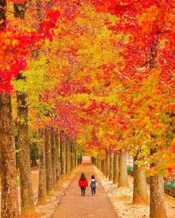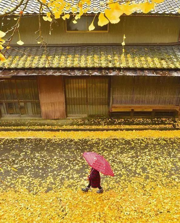 秋天,红叶满墙银杏遍地