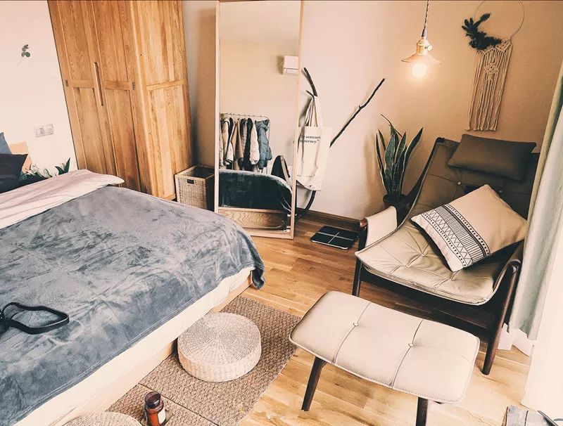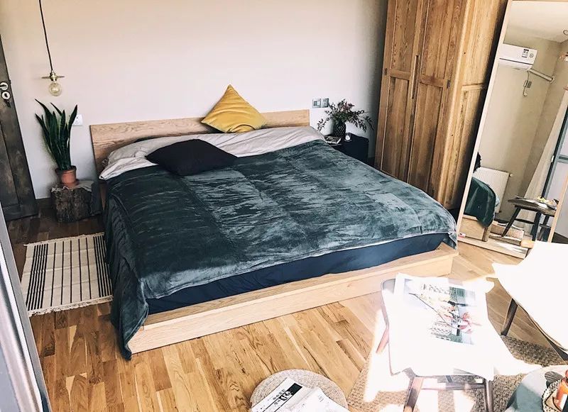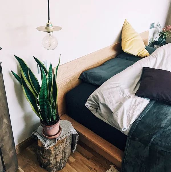 还把捡来的树桩当成了床头柜